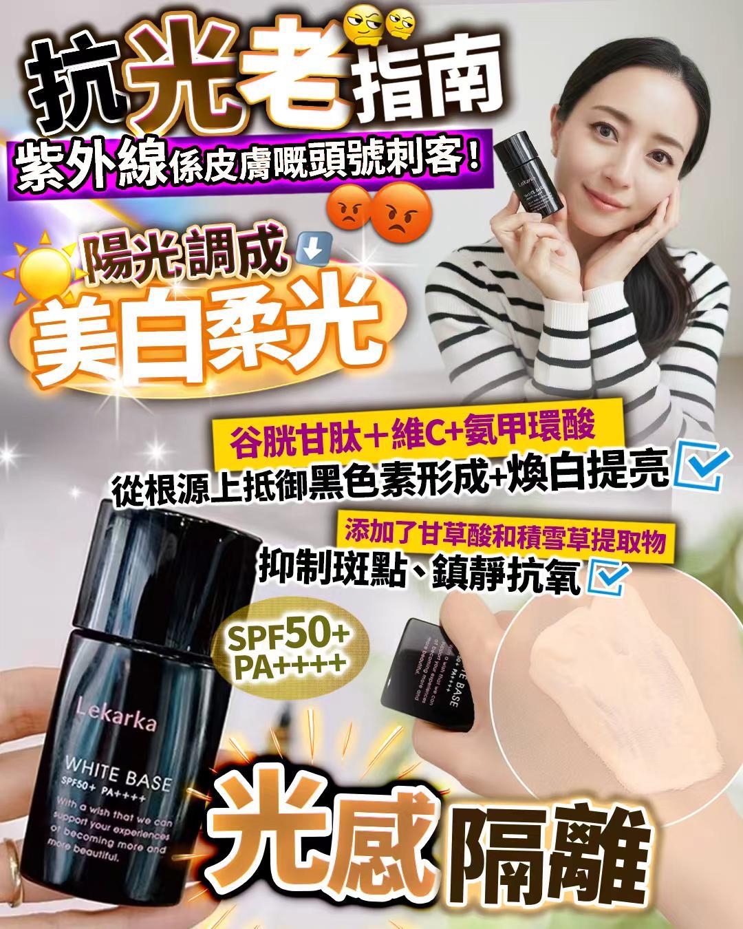 📦訂 約2-3 星期 去日本向JR 見到啲日本妹 啲妝勁靚 零油零脫妝 😍 最後向新宿我都係忍唔住八卦問下人 🤭 終於比我知道 原來係呢支 #光感隔離 上網search 下 真係 十個用九個讚 👍👍👍 日系透明感妝容的重點在於打造自然、輕透、充滿光澤的妝感,營造出像天生好膚質般的無暇效果 ,「光感隔離」著重於修飾膚色、提升氣色,並利用光影效果增加立體感 具有氨甲環酸的抑制黑色素生成的美白效果的藥用美白的UV 隔離。也有抑制雀斑•黃褐斑的色素引起的炎症效果從而達到保護美白肌的藥用美白UV隔離WHITE BASE。 ✨抑制黑色素生成的氨甲環酸: 抑制黑色素的生成,從而防止雀斑,黃褐斑的生成效果可被期待的醫藥部外品的有效成分氨甲環酸2%配方。阻止[造出黑色素!的命令,為了預防新的雀斑形成而產生的炎症而人工做出來的氨基酸。另外,同時抗炎症的作用也是氨甲環酸的特徵。氨甲環酸 ✨防止日曬引起的炎症•肌膚粗糙: 作為漢方的解熱劑而出名的葛根湯中包含的一種生藥,甘草中包含的成分,被認知為抗炎症成分的甘草酸二鉀。另外,被稱為CICA成分的積雪草提取物,還有富含多酚的克里森厄姆靛藍提取液配方,可以抑制雀斑•黃褐斑的色素形成的炎症。 甘草酸二鉀,積雪草提取液,克里森厄姆靛藍提取液 ✨紫外線以外的影響,+a抑制: 在藍光下保護細胞的作用的研究報告的樹莓葉提取物,有抑制UV以及遠紅外線的灼傷(紅斑)的研究報告的刺梨提取物配方。樹莓葉提取物,刺梨提取物 日本製