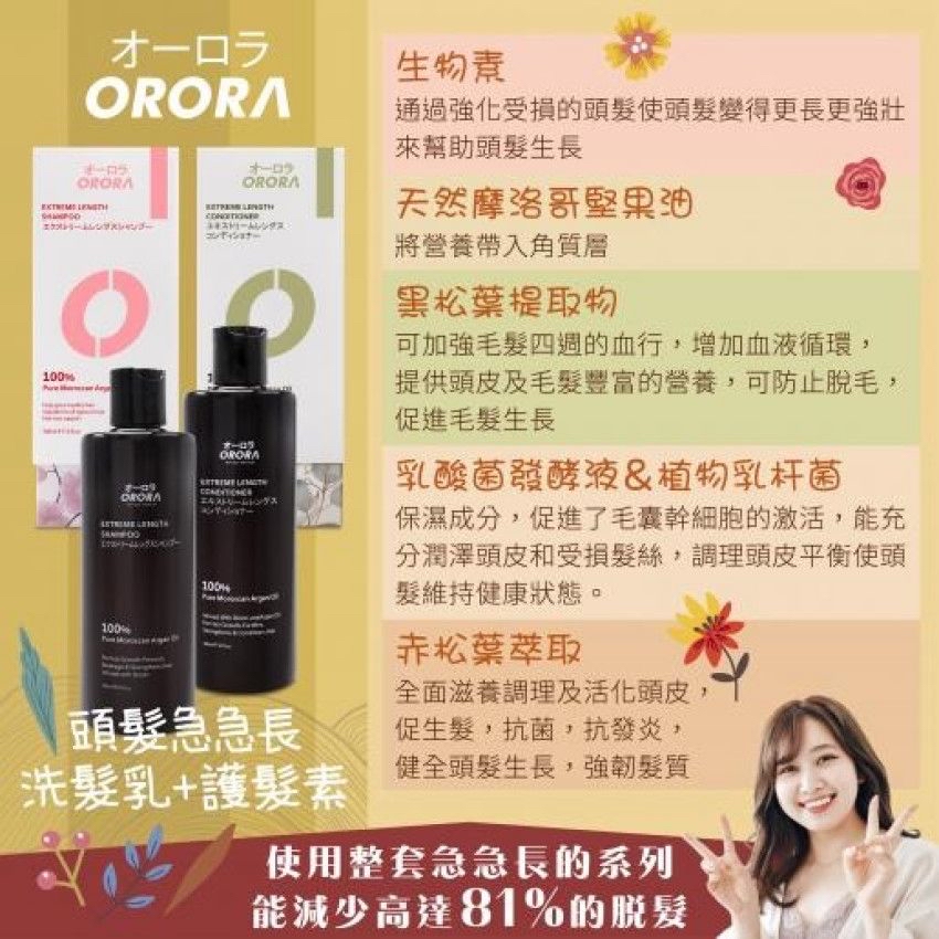 日本Orora急急長防脫生髮洗髮乳300ml / 日本Orora急急長防脫生髮護髮素300ml