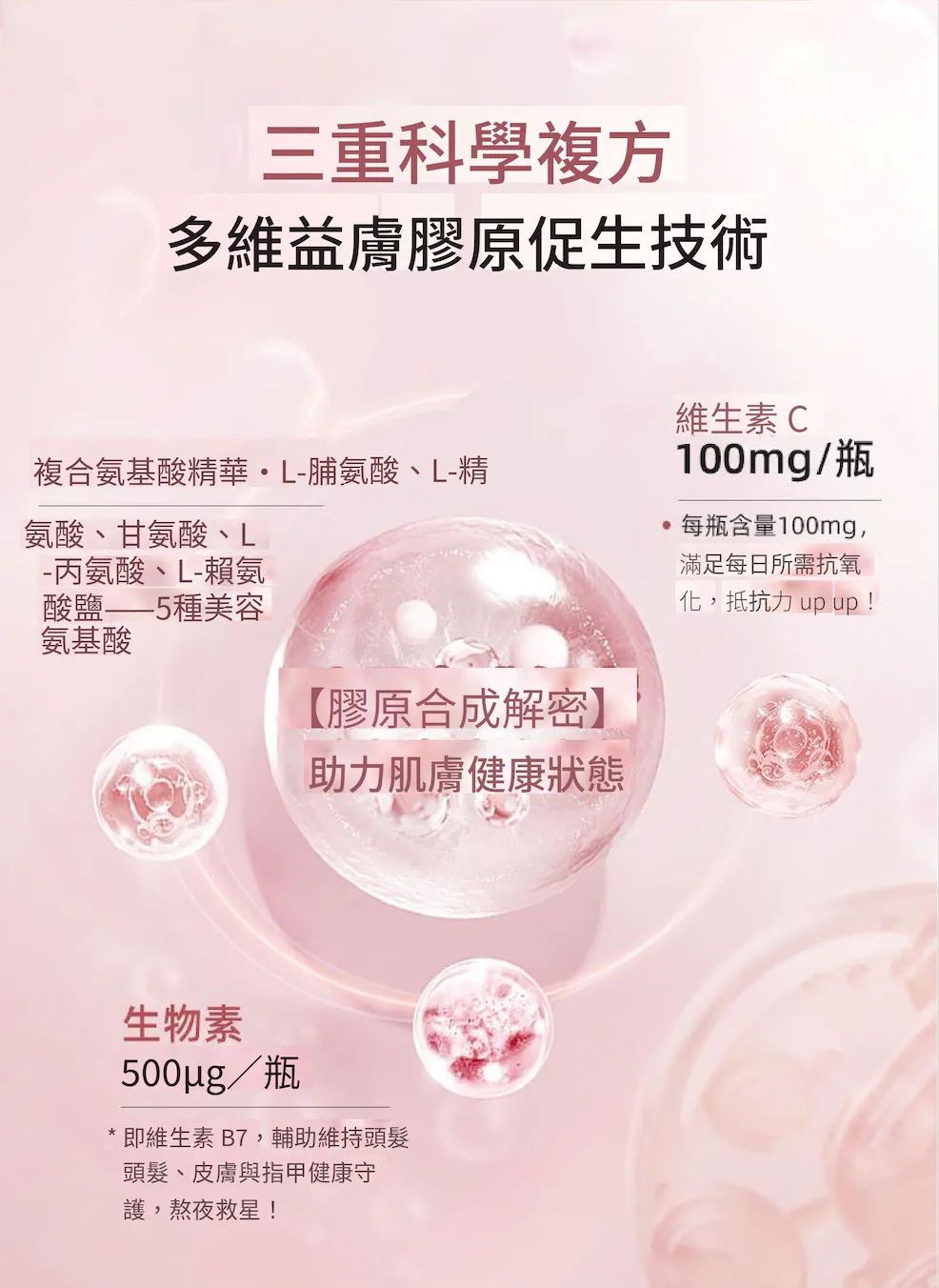 代理貨💥💥💥少量現貨 ‼️*優惠期到2026年1月26日*‼️ 一罐:$508(一罐) 三罐:$1428(三罐) 買五送一 $2758(六罐) 買十送二 $4728(12罐) ❌原價:$598/盒 (不設自提點 ,順豐出貨) 👍🏻一枝已經包含維他命C,分子量僅500道爾頓的深海魚鱗膠原蛋白,彈力蛋白,玻尿酸 👍🏻以最貼近人體真皮層的黃金比例4,500:200:1,從肌膚根源啟動修復機制 👍🏻橙口味,即開即飲, 隨時隨地都可以飲用 👍🏻補充滿滿的彈潤光澤 功效: 😍深度滋養肌底,顯著提升肌膚彈性與緊緻度 😍強效鎖水保濕,改善乾燥與細紋,重現水潤光澤 😍由內而外煥亮膚色,打造健康透亮的「光澤BB肌」 😍同步滋養強韌秀髮與指甲,實現全方位的美麗 食用方法 每日1次,每次1瓶(25ml)。建議於晚間睡前飲用,夜間是肌膚修復與營養吸收的黃金時段,效果更佳。 核心成分
