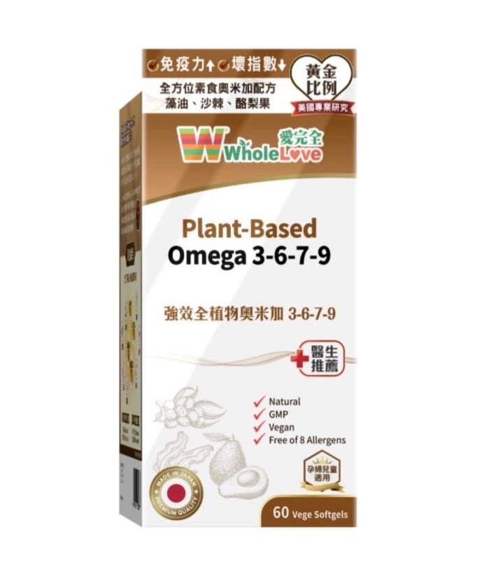 快閃必搶💥💥14 /10 截單🚫 💥$125 /樽 💥$118 /樽,2樽以上 ❌原價$399 ❌ 10月14日截單/售完即止 📦約1-2星期工作天 維持血管彈性、暢通 保護關節 活化腦部,改善記憶力 Wholelove 強效全植物奧米加 3679,選用優質天然海藻油、沙棘全果油、牛油果油,這個營養油組合平衡了人體必需的奧米加-3 和奧米加-6 多元不飽和脂肪酸。另外,奧米加-7及奧米加-9,有助暢通血管、腦筋靈活及強免疫。每粒880毫克* 使用方法 保健用:每日1次,每次2粒 改善用:每日2次,每次2粒